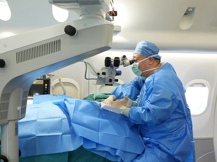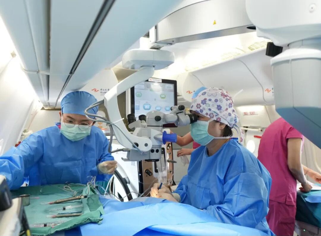 The C909 airborne hospital conducted its first flight in September 2025 to Shihezi, Xinjiang. Since then, the platform has progressed from basic diagnosis to onboard surgical capability.