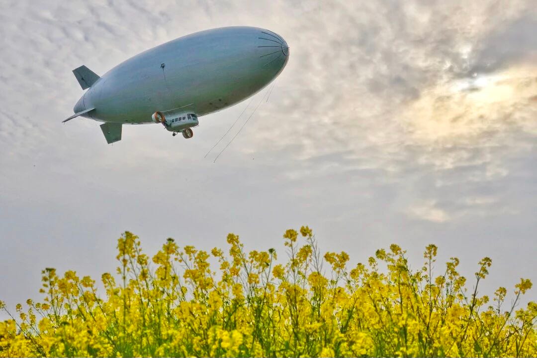 The AS700 is described as a green, low-carbon civilian airship with a maximum takeoff weight of more than 4 tons (about 8,818 pounds), a range of 700 kilometers (435 miles), and a capacity for up to 10 passengers.