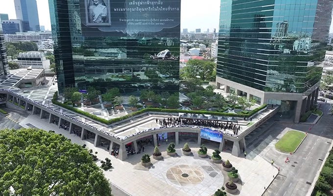The demonstration, held at the Siam Commercial Bank headquarters in central Bangkok, included multiple takeoffs, landings, and route flights.