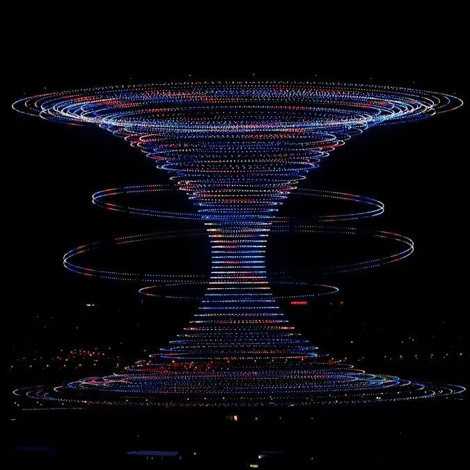 Its performances have repeatedly set Guinness World Records, including for “Most multirotor/drones airborne simultaneously” and “Most formations in a multirotor/drones display by the same group.”